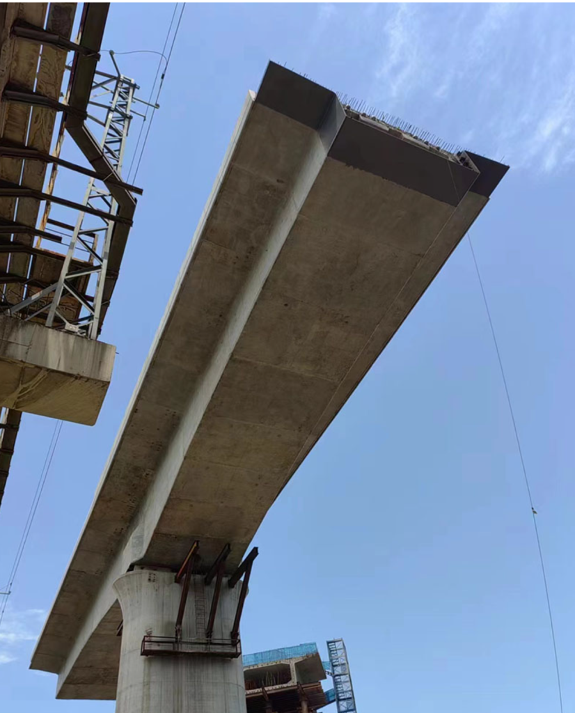 Это строительство было сопряжено с множеством технических проблем: расстояние между нижней частью балки в середине пролета и существующими несущими тросами железнодорожной контактной сети составляло всего 3,12 метра. Кроме того, основные работы должны были быть завершены в течение ежедневного «окна» в один час, отведенного для железнодорожного движения. Традиционные методы подвесной опалубки оказались неадекватными для обеспечения требований безопасности и эффективности. Внешняя стальная опалубка Wuhu Zhongyuan имела полностью закрытую конструкцию, все сварные и арматурные работы проводились внутри. Это полностью устранило угрозу безопасности, связанную с падением строительного мусора на железнодорожные пути. Опалубка поднималась четырьмя горизонтальными секциями, каждая из которых весила до 5,4 тонны. Технология точного позиционирования контролировала осевое отклонение до ≤10 миллиметров и отклонение по высоте до ≤15 миллиметров, что соответствовало стандартам качества инженерных работ 1-го класса.